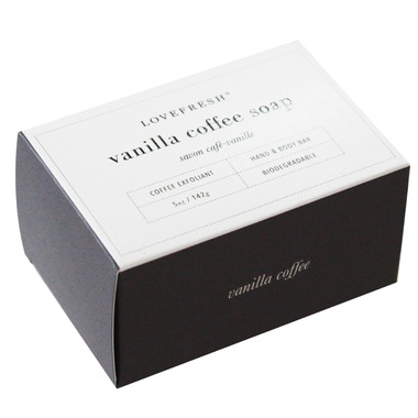 Ingredients: Saponified Oils Of Cocos Nucifera (Coconut Oil), Mangifera Indica (Mango Butter), Butyrospermum Parkii (Shea Butter), Olea Europaea Fruit Oil (Olive Oil), Ricinus Communis (Castor Oil), Vanilla Fragrance Oil, Mentha Viridis (Spearmint Essential Oil), Cold Pressed Coffee Oil, 100% Arabica Coffee Grinds, Loofah