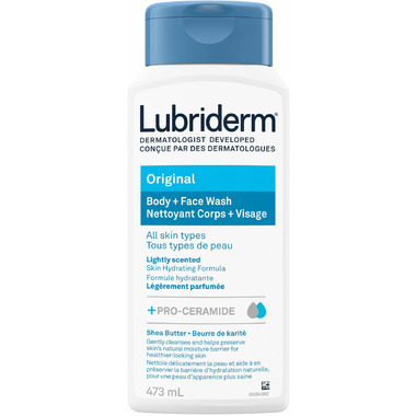 Cleanse and hydrate your skin from head to toe with Lubriderm Original Body + Face Wash. This 2-in-1 full body wash and moisturizing face cleanser from a dermatologist-developed brand gently lifts away dirt, excess oil, and impurities to leave skin feeling clean, soft and healthier-looking. Suitable for all skin types, including sensitive skin, the lightly scented daily cleanser features a gentle formula with pro-ceramide and shea butter to preserve skin's natural moisture barrier. The hypoallergenic, dermatologist tested body wash is free of sulfates, parabens, phthalates, and dyes. To use the hydrating face and body wash as part of your daily skincare routine, squeeze onto a washcloth, work into a rich, creamy lather, and then rinse. Follow with your favorite Lubriderm Daily Moisture Lotion to moisturize skin for 24 hours.