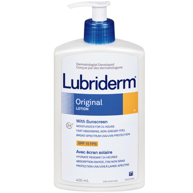 The Lubriderm Original Body Lotion is a daily moisturizer with Broad Spectrum SPF 15 protection. This fast absorbing formula helps protect your skin from the sun’s harmful rays and delivers long-lasting moisture, all with a clean, non-greasy feel.
