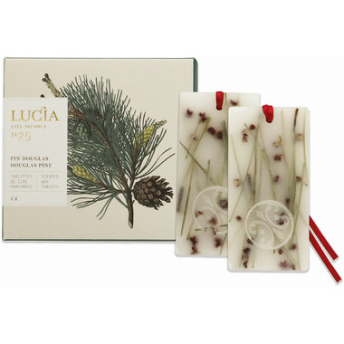Sweet memories of childhood ignite with the smell of majestic pine, as their mother once slipped their hearty branches into cupboards and clothes. To capture the essence of this gesture, these traditionally handmade wax tablets infuse organic soy with scented essential oils of Douglas pine.
