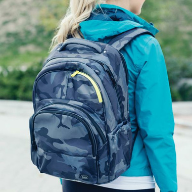 - Padded and adjustable backpack straps and convenient grab handle on top of bag