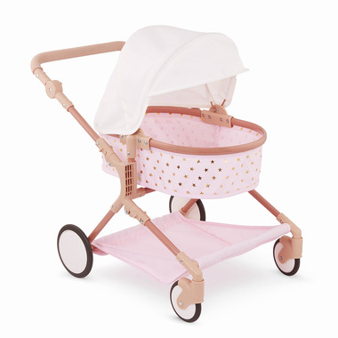 Featuring an easy-grip foam handle that adjusts to different heights, with front swivel wheels and larger rear wheels for easy turning and steering. Perfectly sized for two 35.5 cm (14 inch) dolls, the folding canopy and safety strap will keep the Babi twins comfortable and safe. The removable storage basket underneath keeps Babi's precious accessories close at hand. Compatible with most 14'' dolls and accessories (sold separately). Minimal assembly required.
