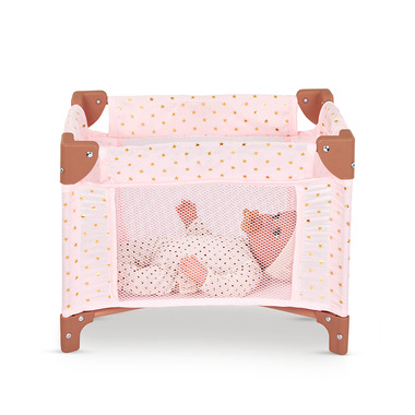 Give baby dolls a lovely place to dream and play with the beautifully designed LullaBaby playpen. Featuring a stylish, golden star-print pattern, this modern playpen fits most 14-inch baby dolls comfortably and easily folds down for convenient storage.
