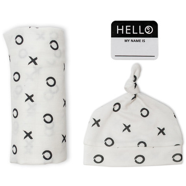Hello World hat and swaddle will have your newborn super cozy and camera ready. This ready-to-use set will make it easy to snap the perfect photo and introduce your little one to family and friends. A special gift for any mom to-be! Each Set includes: silky soft bamboo muslin swaddle, adjustable bamboo jersey knot hat size 0-4 months and HELLO birth announcement sticker.
