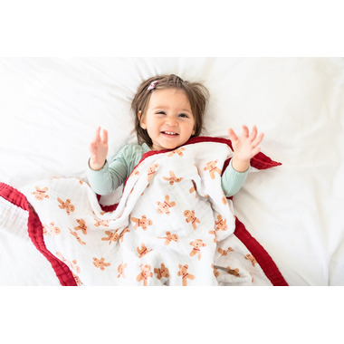 This beautiful heirloom blanket will keep little ones warm and cozy during the holidays. Cuddle up for special moments and use during some of your favourite family traditions year after year. Made with three layers of soft, premium cotton muslin with reversible prints for festive Christmas keepsake photos.