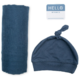 Lulujo Hello World Blanket & Knotted Hat Navy