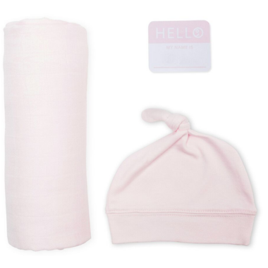 Lulujo Hello World Blanket & Knotted Hat Pink