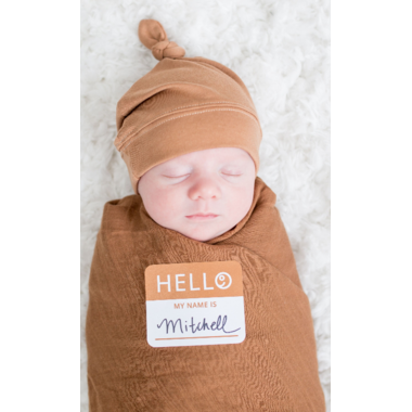Hello World hat and swaddle will have your newborn super cozy and camera ready. This ready-to-use set will make it easy to snap the perfect photo and introduce your little one to family and friends. A special gift for any mom to-be! Each Set includes: silky soft bamboo muslin swaddle, adjustable bamboo jersey knot hat size 0-4 months and HELLO birth announcement sticker.