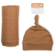 Lulujo Hello World Blanket + Knotted Hat Tan