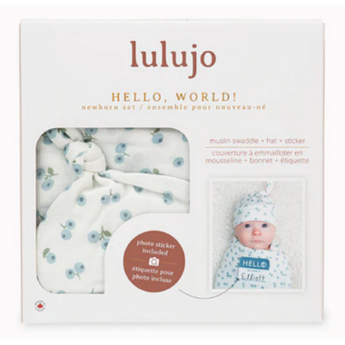 Lulujo's Hello World hat and swaddle will have your newborn super cozy and camera ready. This ready-to-use set will make it easy to snap the perfect photo and introduce your little one to family and friends. A special gift for any mom to-be! Each Set includes: silky soft bamboo muslin swaddle, adjustable bamboo jersey knot hat size 0-4 months, HELLO birth announcement sticker.