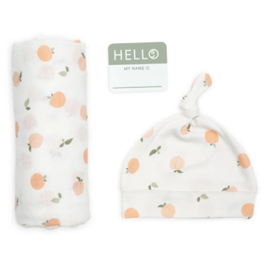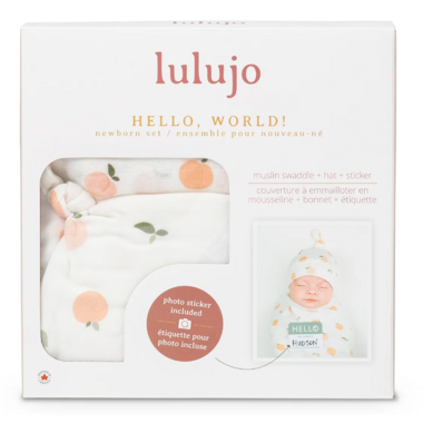 Lulujo Hello World Blanket + Knotted Hat Peaches