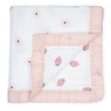 Lulujo Reversible Muslin Blanket 3 Ply Daisies & Strawberry