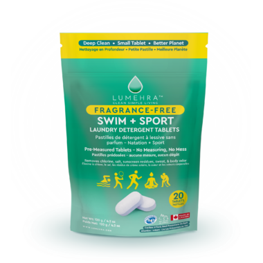 Lumehra Fragrance-Free Swim + Sport Laundry Tablets Protect Your Performance. Preserve Your Gear. Proudly Made in Canada. Your activewear and swimwear deserve more than regular detergent. Lumehra's Fragrance-Free Swim + Sport Laundry Tablets are specifically formulated to deep clean performance fabrics removing sweat, chlorine, body oils, and odor without stretching, fading, or damaging delicate fibers. Each pre-measured tablet makes laundry effortless and precise ח no measuring, no mess, no residue. Why Customers Choose Lumehra - Whether youre training hard, hitting the pool, or managing family laundry, Lumehra delivers a powerful yet gentle clean that protects your investment in quality activewear and swimwear. Big Clean. Small Tablet. Better Planet.