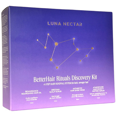 This bestsellers 4-Step BetterHair Rituals Discovery Kit is an easy, grab-and-go way for you to sample Luna Nectar's line with 4 simple steps to elevate your hair care routine for luscious, radiant hair.