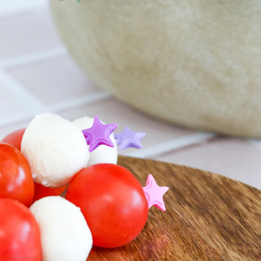 Make food stacks of fun with Lunch Punch Stix food kebab sticks! Create irresistible, edible combinations of fun stacked on a star topped kebab Stix, and in just moments turn lunch from dull to devoured! Stix are carefully designed to fit in all popular bento lunch boxes and they're just the right size for school and party food share platters too. Popular food combinations include a rainbow of seasonal fruits, veggies, cheese and meat and cut squares of sandwiches.