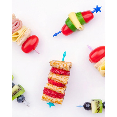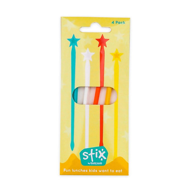 Make food stacks of fun with Lunch Punch Stix food kebab sticks! Create irresistible, edible combinations of fun stacked on a star topped kebab Stix, and in just moments turn lunch from dull to devoured! Choose a favourite colour from the rainbow of Stix colours and slide on a mix of delicious food combinations to tempt the fussiest of eaters. Stix are carefully designed to fit in all popular bento lunch boxes and theyre just the right size for school and party food share platters too. Popular food combinations include a rainbow of seasonal fruits, veggies, cheese and meat and cut squares of sandwiches.