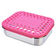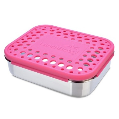 This all-stainless container and lid are enhanced with a snap-on, BPA-free, colourful plastic cover. Only steel touches your food, while the durable color adds to the fun.