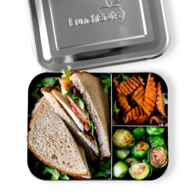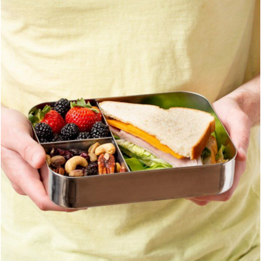 This spacious, 3-compartment stainless steel bento box is designed to fit a full sandwich and two sides. Sandwich fans of all ages love the Large Trio because this single container has plenty of room to fit an entire lunch.