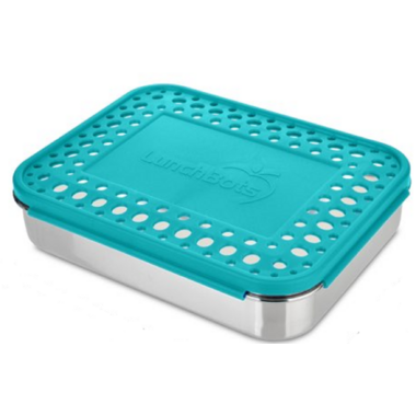 LunchBots Large Trio Stainless Steel 3 Compartment Bento Box Aqua Lid is rated