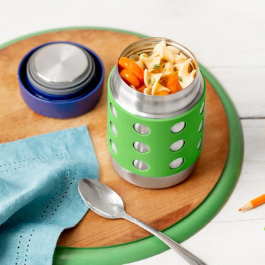 Keep 1 1/2 cups of your favourite soup, chili, or pasta hot for hours in this triple insulated 350ml Thermal food container. A bright silicone sleeve adds a splash of colour and its all-stainless interior means no plastic touches your food.