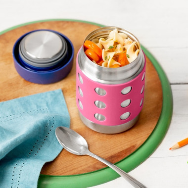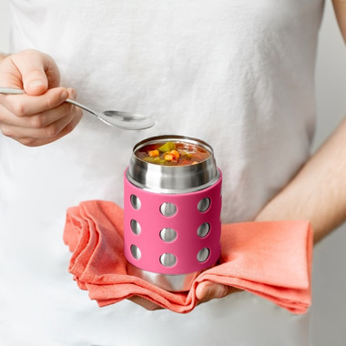 Keep 1 1/2 cups of your favourite soup, chili, or pasta hot for hours in this triple insulated 255 ml Thermal food container. A bright silicone sleeve adds a splash of colour and its all-stainless interior means no plastic touches your food.
