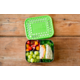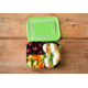 • 3-compartment bento box designed to hold a 1/2 sandwich plus 2 small sides.