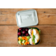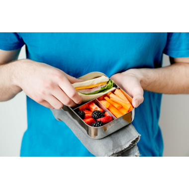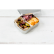 - 3-compartment bento box designed to hold a 1/2 sandwich plus 2 small sides.