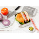 Designed to fit a sandwich, this one-compartment lunch box is perfect for packing your homemade sandwich to go. Made of the highest-quality stainless steel, your lunch will arrive at its destination safe and sound.