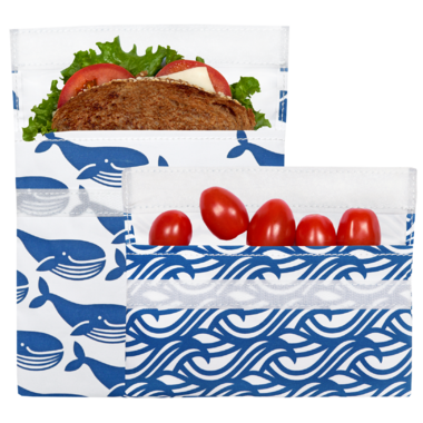 contains 1 reusable sandwich bag and 1 reusable snack bag.
