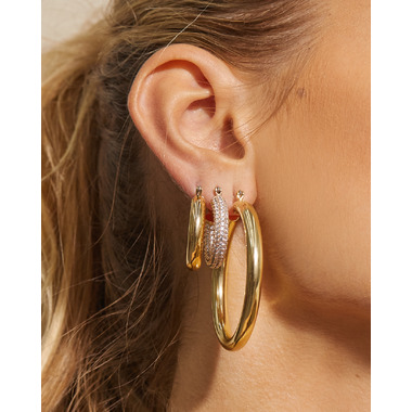 Their best-selling pair of large hollow + lightweight metal tube hoops that are perfect for everyday wear.