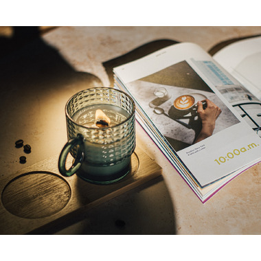 RISTRETTO Scented Candle. A Coffee Lover's Dream Treat yourself to a unique sensory experience with the RISTRETTO scented candle, handcrafted with care by Luvo Parfums in Montreal. This beautiful candle, poured into a stackable glass coffee cup, is a delightful addition to your home decor.