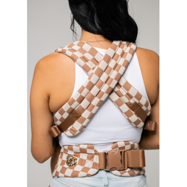 Mabē's best selling Monarch Carrier in a classic Mocha checkerboard pattern.
