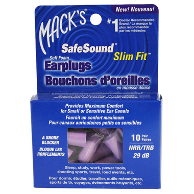 Mack's Slim Fit Soft Foam Ear Plugs are just like Mack's Original SafeSound foam earplugs, except these come in a slightly smaller size (and a soothing purple color). These ear plugs are molded from state-of-the-art ultra soft foam, with a smooth non-irritating skin that is easy on your ears. When getting a comfortable ear plug is your top priority, Mack's Slim Fit Foam Ear Plugs are highly recommended for anyone with smaller than average ear canals. They may be smaller, but these plugs are still perfect for blocking snoring and other irritating noises. Their high NRR 29 noise blocking makes them ideal for sleeping, studying, workplaces up to 107 dB, and even motorcycling and travel.