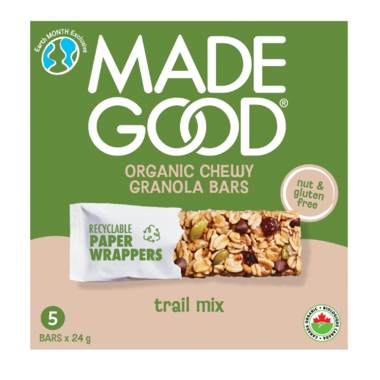 Madegood's NEW Trail Mix bars are wrapped in recyclable FSC-Certified paper! That means you can munch on the snacks you love with the planet in mind. Once you're done, just toss it in the nearest recycling bin.