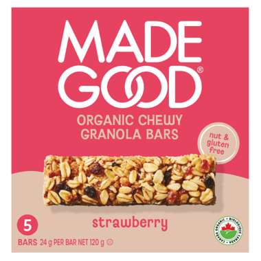 Gluten free oats*, agave nectar*, strawberry pieces* (apple juice concentrate*, apple puree *, strawberry puree*, cherry juice concentrate*, apple pectin, natural flavour*), brown rice syrup*, sunflower oil*, crisp brown rice*, currants*, inulin*, molasses*, vegetable powder (spinach, broccoli, carrots, tomatoes, beets, shiitake mushrooms), natural flavour*, agar*.