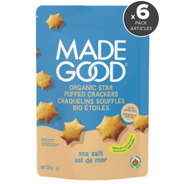 - 6x MadeGood Star Puffed Crackers Sea Salt, 121g