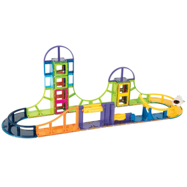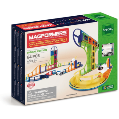 Create and build a track with the twists, turns, and seesaws for the ultimate sky adventure!  Watch as your shuttle (size: 3"L x 2.5"W) does a 360 degree spin and climbs the lift elevator.  Control your path with the stop-go button, and watch the shuttle pass over the seesaw.  When your track is complete, the sky shuttle can go off-road in its sky car.