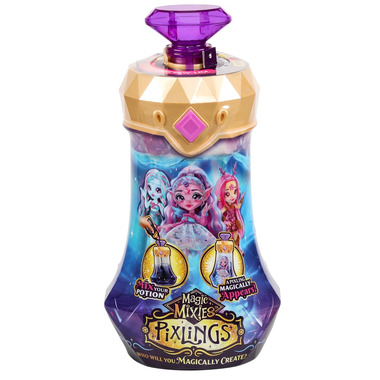 Create a Magic Potion. Magic Mixies Pixlings come with all the magical ingredients required to make Pixlings appear and come to life! To create a potion, combine water with the included magical ingredients in the Potion Bottle. Watch as the liquid transforms to deep blue and swirls mysteriously. Mix your potion and a Pixling doll will magically appear!