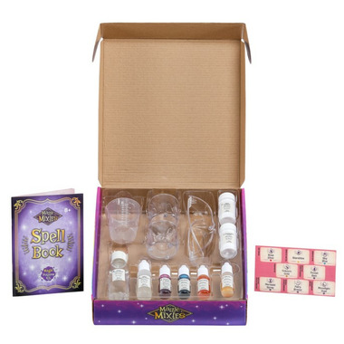 "Magicus Mixus!" Create Potions and Elixirs! Now your child can create truly magical potions that will amaze and astound. The Magic Mixies Magic Potion Kit allows children to mix and create over 70 different magic potions. Every potion has a magical "WOW "reaction! They can create enchanting reactions, spellbinding solutions and potions with motion! There are potions that fizz, bubble, turn solid, change color and even form layers right before your children's eyes! Follow the Magic Mixies Spell Book to mix ingredients like Dragon Drops, Mermaid Spray and Enchantment Dust to create mysterious spells such as Magic Forest Foam, Magic Tear Drops or Bubbling Crystal Lava! The Magic Mixies Magic Potion Kit includes 8 different ingredients, 2 Mixing Cauldrons and other toy accessories to help kids make their potions. There is so much magic to make and hours of fun in this amazing kit. Which potion will your child create first?
