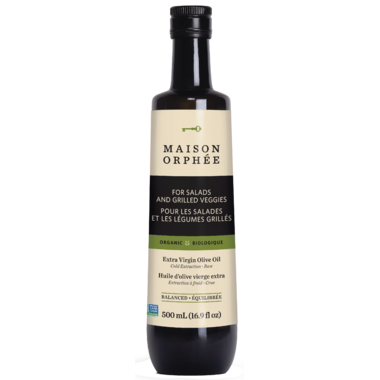 Maison Orphee Organic Extra Virgin Olive Oil is perfect for salads and grilled vegetables. This oil is made from sun- drenched olives which gives it a very fresh and subtle taste with a touch of bitterness and a light peppery finish.