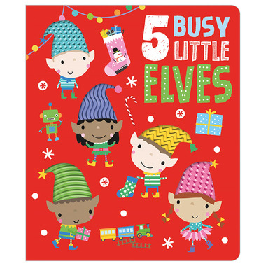 Count down from five with the elves in this festive board book! Read the playful rhyme and watch as the silicone elves disappear one by one with the turn of the page. This tactile book offers plenty for young children to look and enjoy, making it perfect to share over the holidays.