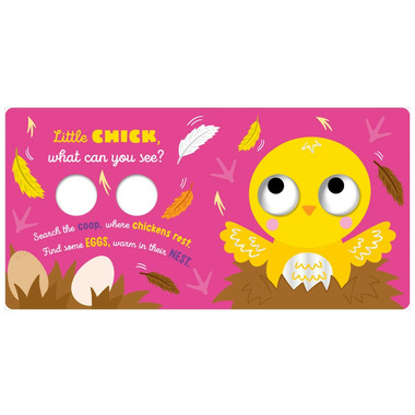 Join the farm friends on a search-and-find adventure! Move the giant googly eyes up, down and all around as you help the animals find things on each page. With fun interactive rhymes and shiny foiled animal illustrations throughout, little ones wont be able to take their eyes off each page!