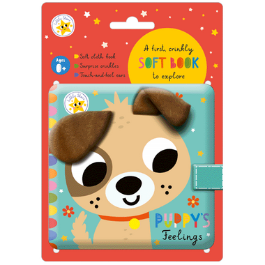 Introduce emotions with this sweet cloth book, Puppys Feelings. Have fun crinkling the soft pages as you explore emotions with the animal friends. Discover a mixture of crinkly and soft cloth pages, and explore fun touch-and-feel puppy ears on the front cover. 8 page cloth book with a touch on the cover, packaged on a backing board.
