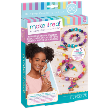Budding jewelry designers can get their start with this DIY charm bracelet kit. Mix & match the assortment of colourful beads and charms to make up to 3 beautiful bracelets. Ages 8+.