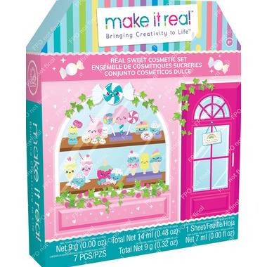A candy themed gift set of an array of cosmetics. Includes everything to create a full look from face to nails.