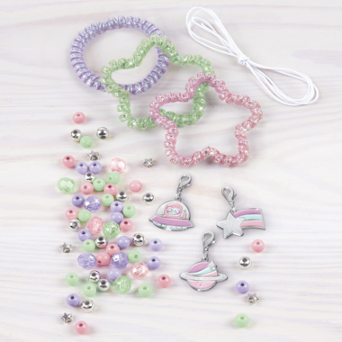 Budding bracelet designers will love this DIY charm bracelet kit! Mix and match the assortment of beads and charms to make up to 3 beautiful bracelets.