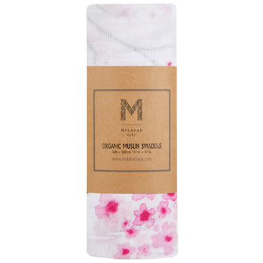 Malabar Baby Certified Organic Cotton Muslin Swaddle Cherry Blossom