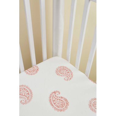 Malabar Baby Handmade Block-Printed Fitted Cotton Crib Sheets Pink City