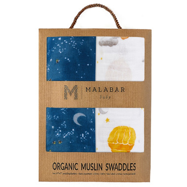 The perfect baby gift in a recycled gift box! 2 swaddles made from luxuriously soft organic cotton muslin. Malabar Baby swaddles are the softest and most luxurious organic swaddles on the market! Shop single swaddles + 2-Pack gift sets that are the perfect gift for baby showers. The great thing about the size and quality of Malabar Baby swaddles are that they allow you to re-use and re-purpose as sheets, summer blankets, beach blankets, feeding covers and stroller covers! Made from luxuriously soft organic cotton muslin, the Malabar Baby swaddle blanket is designed to keep baby cozy all year round. The ultimate in versatility, this swaddle blanket is a go-to for bedtime and beyond, as it can also be used as a burp cloth, nursing cover, changing pad cover and more. Moms also love using Malabar Baby swaddles as a hair towel and a beach cover up!