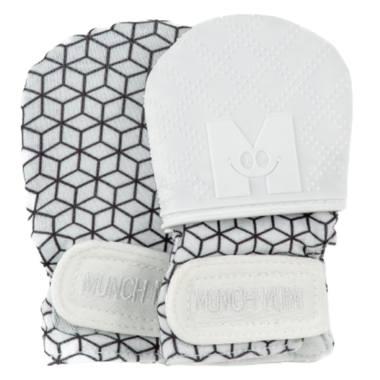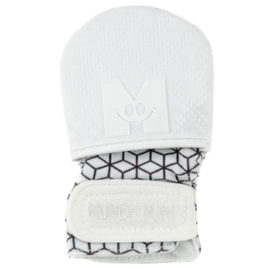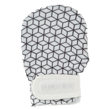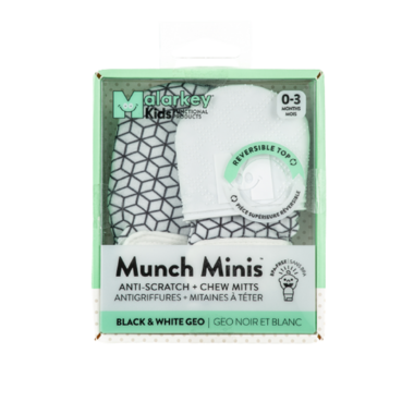 Malarkey Kids has combined the traditional anti-scratch mittens with the trademark Munch Mitt silicone cap technology to make for the perfect newborn anti scratch + chew mitts. One side of the double-sided flip top cap features soft, textured silicone for baby to suckle on, while the opposite side provides soft fabric to protect against scratches. Giving dual uses in one pair of mitts, simply choose the side required and strap it on baby's hands.